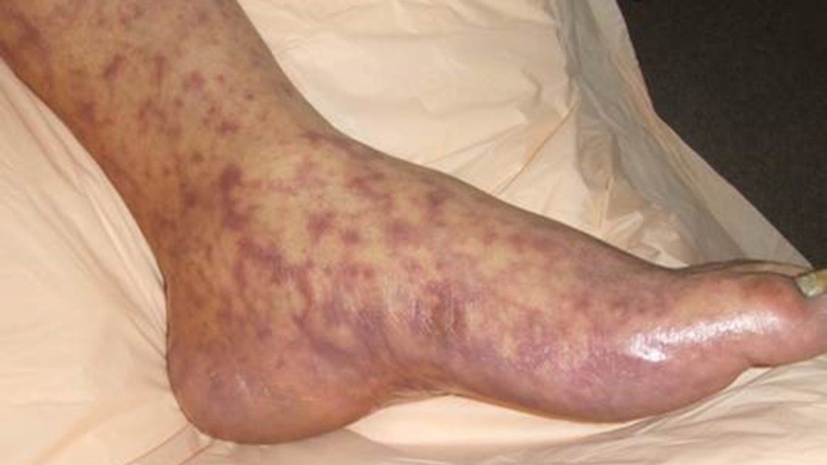 Late-stage rash in a patient with Rocky Mountain spotted fever.